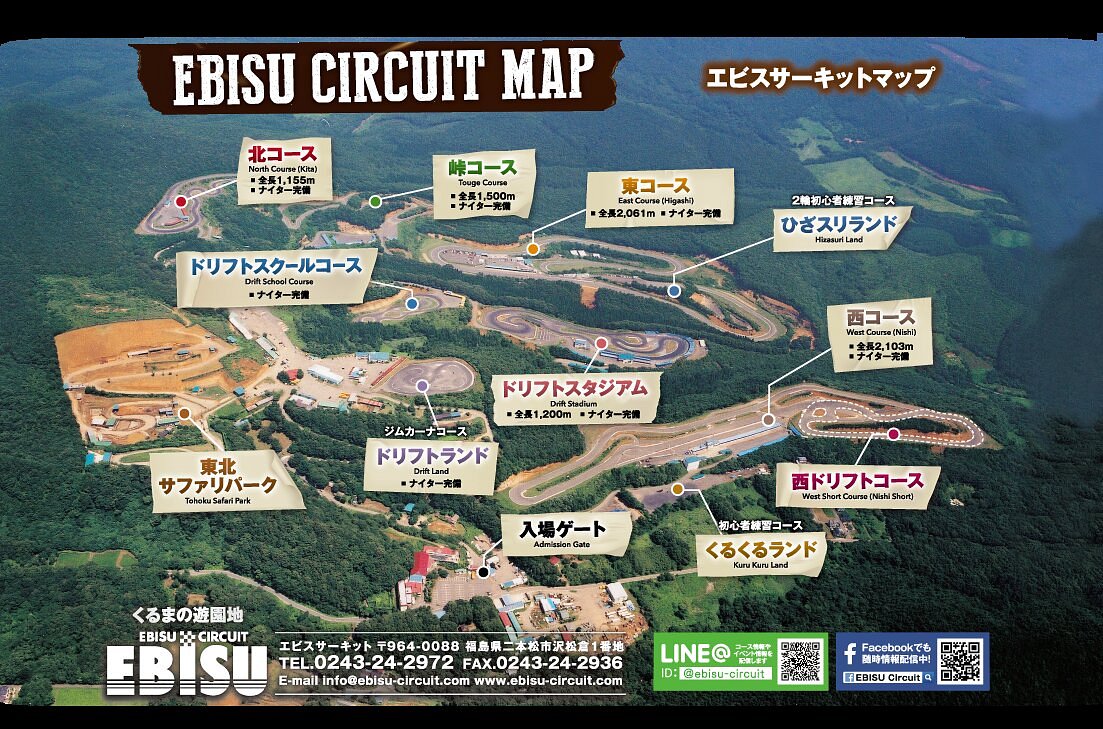 Трасса Эбису — это обширный автоспортивный комплекс в Нихонмацу, префектура Фукусима, признанный во всем мире как главное место для дрифта. Он включает в себя несколько трасс, в том числе специализированные дрифт-трассы, и является центром как профессиональных, так и любительских дрифт-мероприятий, таких как знаменитые фестивали Мацури. Его значение заключается в его роли как места зарождения и испытания многих дрифт-техник и гонщиков, привлекая энтузиастов со всего мира.