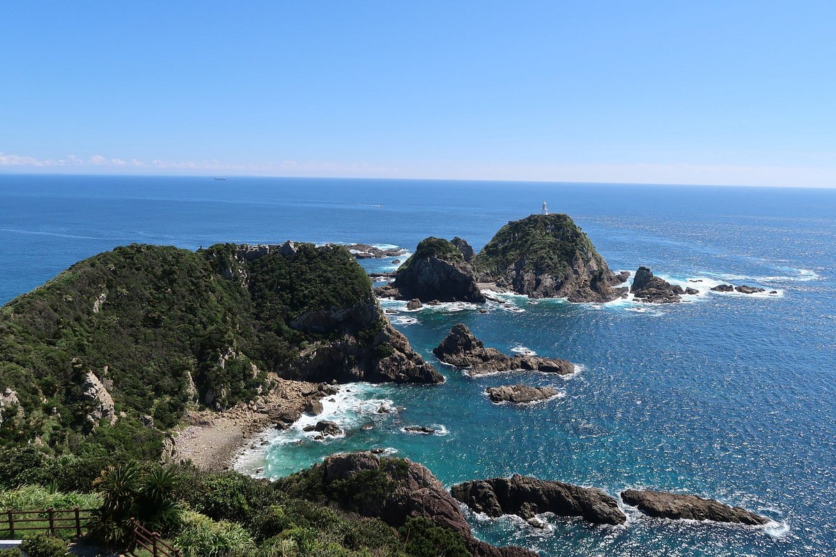Смотровая площадка на мысе Сата отмечает самую южную точку материковой Японии, предлагая посетителям уникальное географическое положение в сочетании с потрясающими природными видами. Это место, где Тихий океан встречается с Восточно-Китайским морем, предоставляя драматические прибрежные пейзажи, маяк и далекий вид на классический конический вулкан. Район славится своей первозданной, нетронутой красотой, что делает его значимым местом для любителей природы и тех, кто стремится к достижению географического предела.