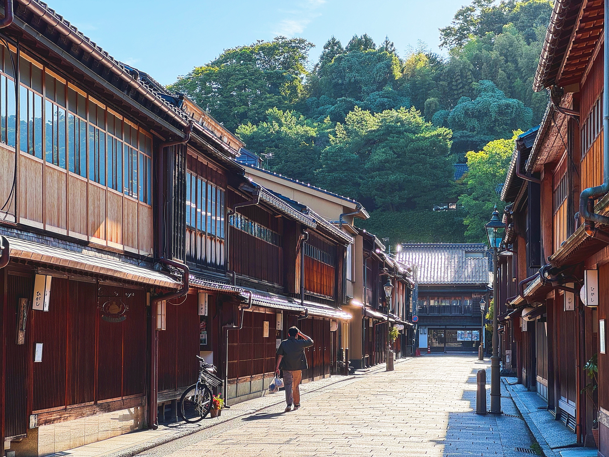 Посетители неизменно хвалят живописную красоту и историческое очарование района, часто описывая его как меньшую и менее людную альтернативу киотскому району Гион. Многим нравится бродить по узким улочкам и переулкам, наслаждаясь традиционной архитектурой. Район особенно известен обилием магазинов, продающих знаменитые изделия из сусального золота Канадзавы, от косметики и ремесел до мороженого и сладостей с золотыми хлопьями. Отзывы часто подчеркивают уникальный опыт шопинга и возможность попробовать местные деликатесы. Атмосфера часто описывается как спокойная, особенно рано утром или поздно вечером, что позволяет делать отличные фотографии.
