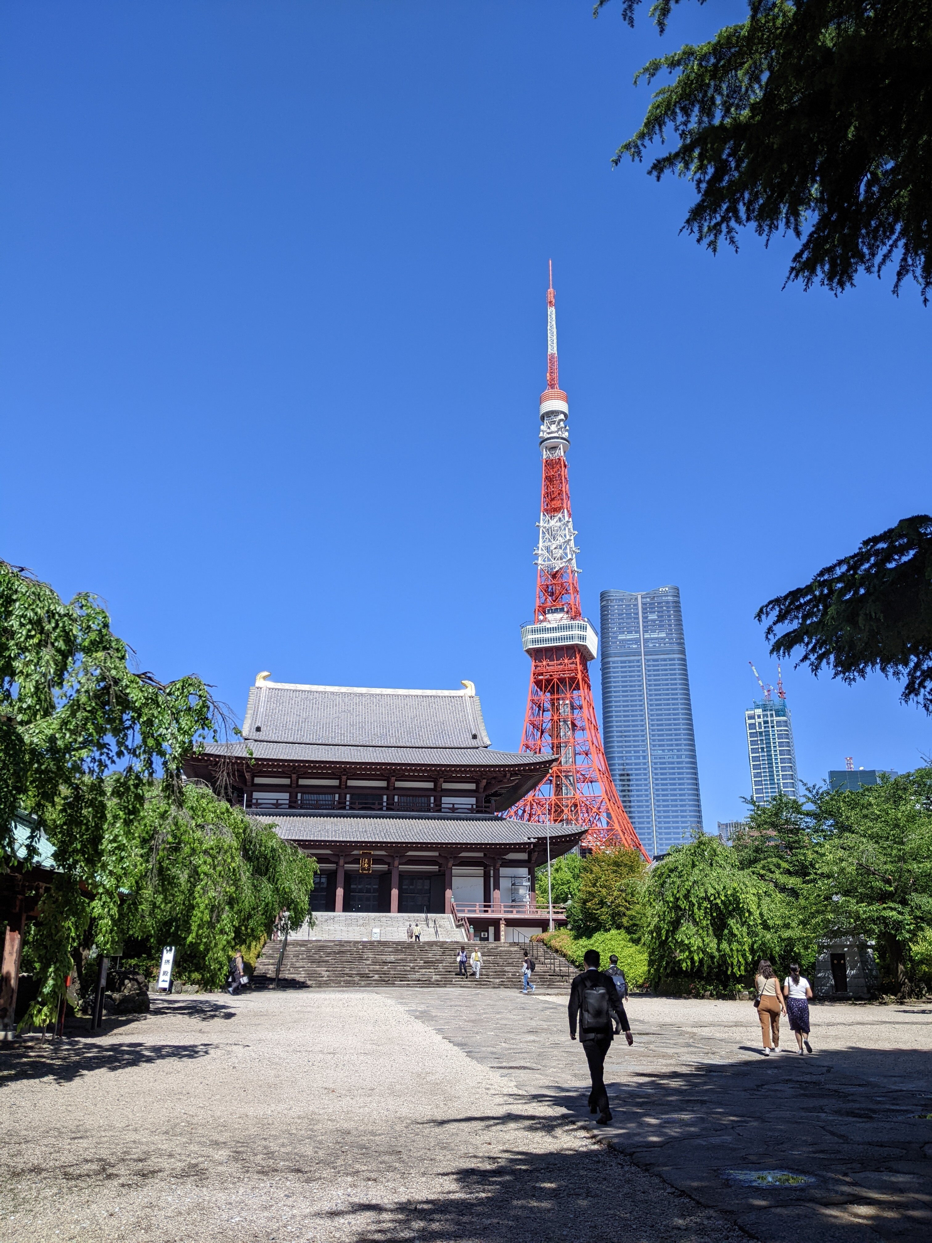 Посетители неизменно хвалят храм за его мирную и спокойную атмосферу, часто описывая его как тихий оазис вдали от шумных улиц Токио. Яркий визуальный контраст между традиционной храмовой архитектурой и возвышающейся Токийской башней на заднем плане является главной изюминкой, что делает его очень рекомендуемым местом для фотографирования. Многие рецензенты упоминают трогательные статуи Дзидзо, посвященные нерожденным детям, с их характерными красными шапочками и нагрудниками, которые добавляют уникальный и пронзительный элемент на территорию. Храм особенно красив в сезон цветения сакуры, когда окружающие деревья усиливают его безмятежное очарование.