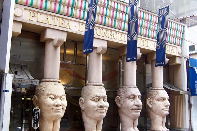 Передние колонны отеля Dotonbori являются отличительной архитектурной особенностью отеля Dotonbori в Осаке. Установленные в 1991 году, эти четыре гигантские колонны украшены реалистичными человеческими лицами, каждое из которых призвано представлять свой глобальный регион: Европу, Ближний Восток, Африку и Восточную Азию. Они призваны символизировать омотэнаси, традиционный японский дух гостеприимства, отражая ориентацию отеля на международных гостей. Хотя сам отель является функциональным местом размещения, эти сюрреалистические колонны стали небольшой достопримечательностью для тех, кто проходит через оживленный район Дотонбори.