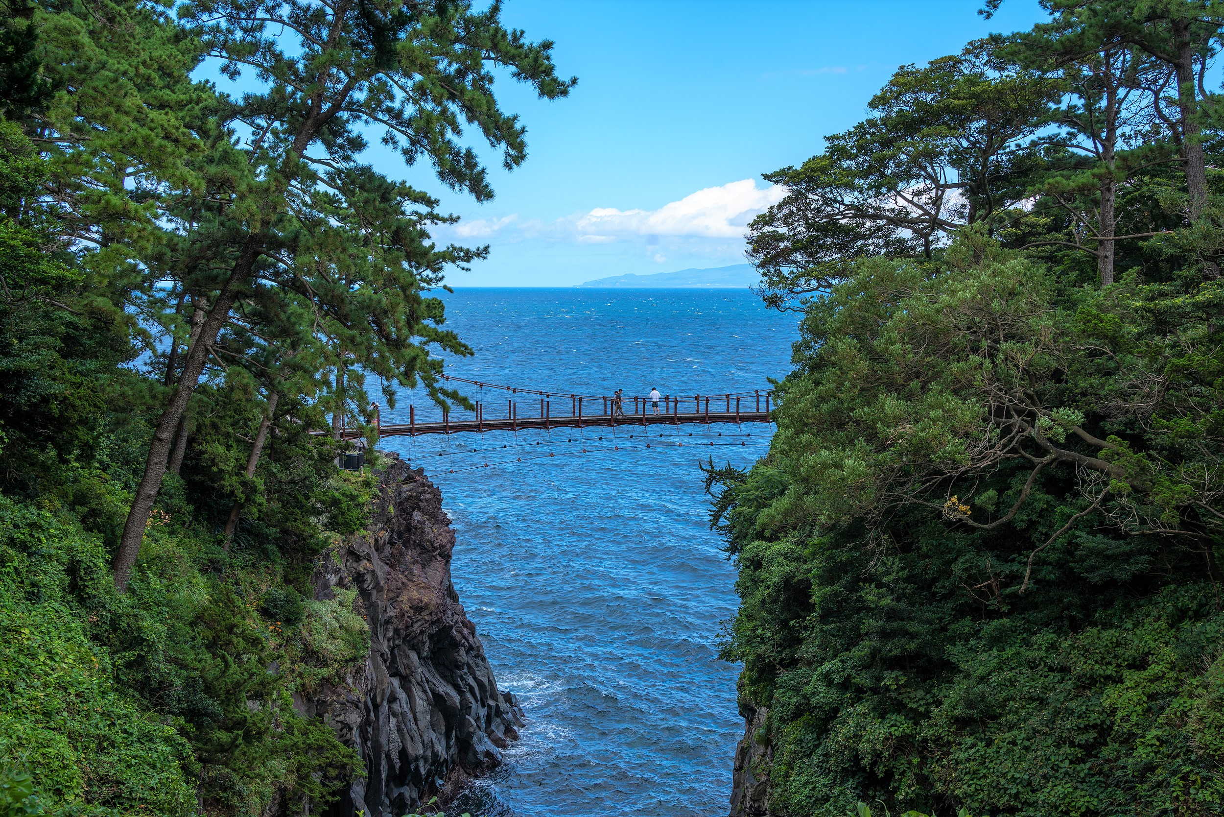 Подвесной мост Кадоваки является выдающейся особенностью побережья Дзёгасаки в Ито, префектура Сидзуока. Протянувшись на 48 метров между двумя скалами и находясь на высоте 23 метра над уровнем моря, он предлагает посетителям уникальный вид на скалистое побережье, образованное древними вулканическими извержениями. Мост является неотъемлемой частью живописной тропы по побережью Дзёгасаки, которая славится своими драматическими лавовыми образованиями и чистыми водами.