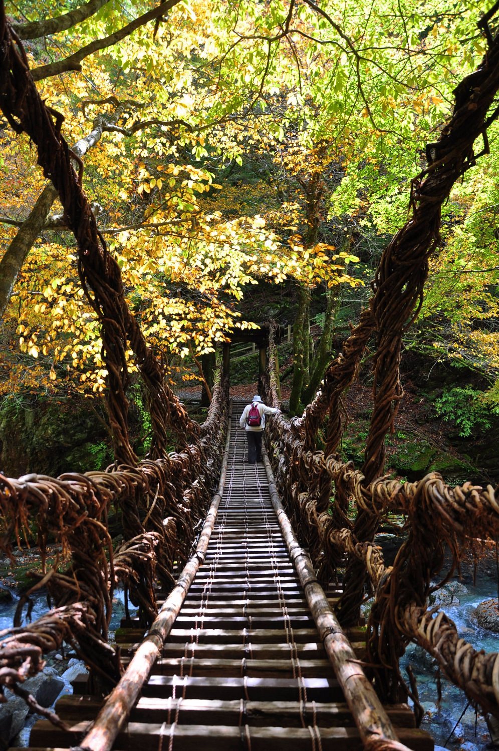 Мост Окуия Нидзю Кадзурабаси, часто называемый «Двойными висячими мостами» или «Мостами Мужа и Жены», является значимой исторической и природной достопримечательностью, расположенной глубоко в долине Ия. Эти два висячих моста, наряду с уникальной ручной тележкой «я-эн», дают представление о прошлом региона, которое, как считается, связано со скрытыми деревнями клана Хэйкэ. Хотя мосты теперь усилены стальными тросами для безопасности, они сохраняют свой традиционный вид и обеспечивают захватывающий опыт над чистой рекой внизу.