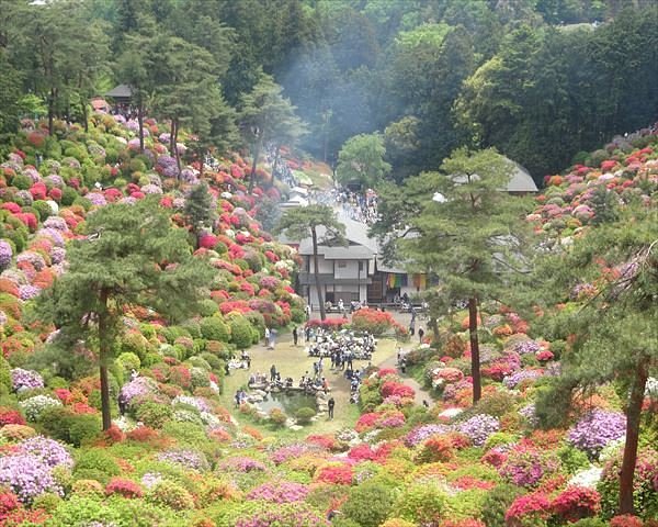 Посетители неизменно отмечают фестиваль азалий, который обычно проходит с конца апреля до начала мая, как главную достопримечательность храма. Отзывы описывают это как «потрясающее буйство красок» с 17 000 кустов азалий 15 различных видов, создающих захватывающее зрелище. Многие считают его одним из лучших азалиевых садов Японии, превосходящим даже более известные. Помимо цветов, храм предлагает безмятежную атмосферу, некоторые посетители наслаждаются «настоящим японским храмовым опытом» и возможностью прогуляться по красивым садам, ведущим к впечатляющему святилищу с великолепными видами. Присутствие гигантской статуи Будды и колокола также дополняет впечатления.