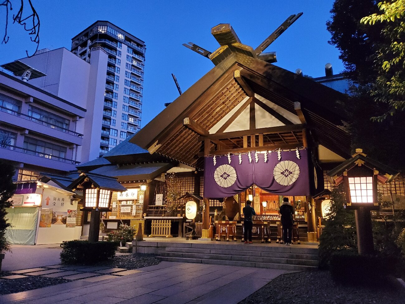 Посетители неизменно хвалят святилище за его безмятежную и священную атмосферу, несмотря на его расположение среди современных городских зданий. Многие рецензенты подчеркивают его репутацию «святилища любви» или «святилища брака», отмечая преобладание молодых людей и женщин, ищущих благословения для своей романтической жизни. Часто упоминается положительный аспект — наличие различных амулетов для любви и отношений. Рецензенты также ценят уникальную японскую культурную архитектуру и возможность наблюдать традиционные ритуалы, такие как свадебные церемонии, которые иногда проводятся здесь.